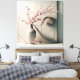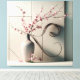 Eine florale Komposition mit skulpturaler Spannung: Zarte Kirschblüten entfalten sich in einer gerippten Vase, begleitet von einem fließenden Linienband, das sich elegant um Gefäß und Wandstruktur legt. Der Hintergrund bleibt geometrisch und ruhig, die Farbwelt weich und atmosphärisch. Die Szene verbindet organische Leichtigkeit mit architektonischer Präzision – ideal für Räume, die florale Bewegung und gestalterische Klarheit suchen.