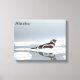 En digital målning av en brun och vit ribbonförsegling som vilar på en isflod på en mycket grått- och drömdag. Anpassadet "Alaska" visas också. Bältsälen (Histriofoca fasciata) är en medelstor tärning från den sanna sälfamiljen (Phocidae). De är bland de mest slående och lätta att känna igen. De kan identifieras med hjälp av de distinkta ljusbanden eller "rosett band" som omger deras färgad, varje förflippare och höfter. Kontrasten är särskilt stark med hanarna, som har en brun till svart mörk med vitt rosett band, och honorna sträcker sig från silvery-grått till mörk brun med blekare rosett band. Valper av nyfödda ribbonsälar har vita, natala päls. Efter att ha mumlat sitt natala päls ändras deras färg till blått grått på ryggen och under silvret. Efter några år blir vissa delar mörkare och andra ljusare, och det är först vid fyra års ålder som den typiska utformningen visar sig. Ribbon sälar formar sitt jacka av hår varje år, med början i maj och avslutande i juli, och yngre individer formar tidigast. Bältesförseglingen har en stor uppblåsbar säck i luft som är ansluten till luftstrupen och som sträcker sig på högernas sida över revbenen. Det kan fungera som en bärkraft, för luft under dykning eller för "fonation". Det är större hos män än hos kvinnor. Bältsälen kan växa till cirka 5,2 ft lång och väga upp till 209 lb hos båda könen. Ribbon sälar alternerar sina förflippar och svänger bakkvartsparter till springa över is, i stället för att använda den kantpelarliknande rörelse som vanligen används av de flesta sälar. Ribbon sälar är också fysiologiskt och anatomiskt anpassat för att göra djupare divar (upp till ca 1950 ft (600 m)) och simma snabbare än andra sälar. De har en sac från luft som säger att Ribbon sälar är en säsongsbunden isbunden art som finns i de arktiska och subarktiska områdena i NordStilla havet, särskilt i Bering Sea and Sea of Okhotsk, och angränsande delar av Arktiska havet, inklusive Chukchi Sea, östra Sibirien Sea och westerna Beaufort Sea. Dessa sälar är relativt solitära och tillbringar större delen av sin tid på öppet hav och bildar lös ballast i packisen under vår till ge födelsen, sjuksköterska valper och mullig. De ses mycket sällan på snabbis eller på land. Denna art verkar föredra måttligt tjocka, "rena" isflockar som finns på den inre zona på isfronten. Från slutet av mars till tidigt-maj är bäckenet sälar i Beringshavet från Pribilof-öarna till Bukt i Anadyr, ungefär längs kontinentalsockeln, mer rikt på nordvästlig isfront. I maj till mitten av juli kommer isen att gå längre norrut i sälar, där den kommer ut på den avtagande isen kant och kvarvarande is, ibland i tätbefolkade områden. När isen har smält migrerar förmodligen de flesta ribbon sälar med den avtagande sjöisen genom Bering Rak till Chukchi Sea eller förblir pelagiska i Berings hav under resten av året. Hittills har det bara funnits två erkända exempel på att man har hittat ribbon sälar så långt söderut som Seattle, Washington och ännu längre söderut i Morro Bay i Kalifornien. Det fanns inget som tydde på att sjukdom var orsaken till att sälar dök upp i båda ställe, eftersom båda verkade vara friska. Ribbonsälen mammor ge föds till sina valper långt ut till havs i packisen under april till tidigt-maj. Valperna dubblor sin vikt under amningen och är avvanda efter tre till fyra veckor. Kortast efter avvänjningen sker sannolikt parning, även om födelsen är föga känd. Det är känt att Ribbon sälar äter en mängd olika fiskar, bläckfisk och kräftdjur. Information om deras matande vanor är dock begränsad och är till största delen begränsad till vår när ribbon sälar matar mindre, vilket framgår av deras minskade vikt och tjocklek. Även om det finns få direkta bevis på predation, så omfattar de potentiella rovdjuren på sälar polar björnar, dödliga valar, hajar och valrossar. Ribbon sälar är förhållandevis obetänksamt när det dras ut och kan närma sig varandra med båt. Detta beteende tyder på att ribbon sälar förmodligen inte är särskilt predant för björnar av polar, utan att det också kan göra dem särskilt mottagliga för människans jakt. Sibirien och Alaska Natives har jagat ribbonsälen för många generation för sitt uppehälle, och det nuvarande årliga upptaget av Alaska Natives uppskattas till mindre än 200 sälar per år. Under 1960-talet och 1980-talet utfördes kommersiella skördar av ribbon sälar av sovjetiska sälar, under vilka beståndet i Bering Sea tros ha minskat från 80 000 eller 90 000 djur till 60 000. Enligt undersökningar under tidigt och mitten av 1970-talet beräknas befolkningen i hela världen på mellan 200 000 och 240 000, med uppskattningar på mellan 60 000 och 100 000 i Berings hav. Det finns för närvarande ingen aktuell och tillförlitlig uppskattning av överflöd. Till rågsälarnas rovdjur hör orca, grönländska haj och polar björnar. På 1960-talet minskades befolkningen på sälar i Berings hav från cirka 120 000 till 70 000. Den storleka populationen ökade 1987 till omkring 130 000 efter att kvoterna hade fastställts för att begränsa skörden till ungefär en fjärdedel av det antal sälar som tidigare jagades. I den senaste bedömningen från lagrar (2007) uppskattade National Marine Fisheries Service den globala befolkningen till 240 000 sälar, varav 90 000-100 000 bor i Berings hav. I Okhotsk-sjön var det genomsnittliga antalet ribbon sälar 370 000 mellan 1968 och 1988. Den nuvarande befolkningsutvecklingen är okänd, men färska uppskattningar tyder på att inga katastrofala nedgångar har inträffat under de senaste årtiondena. Människorna har jagat ribbon sälar för generation och jagas fortfarande i dag av sibirierna och alskanerna för uppehället, men antalet skördade sälar har alltid varit relativt litet (mindre än 100 i Alas