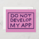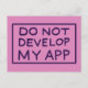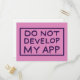 En säkerhetsskyddstatuering med texten: "UTVECKLA INTE MY APP".