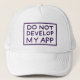 En säkerhetsskyddstatuering med texten: "UTVECKLA INTE MY APP".