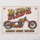 Hackad klassisk motorcykel, vintage stildragning, färg, med, "Rid - Som vinden" i utsmyckad antik bokstav. T-shirts, sweatshirts, tryck, presenter.