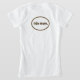 Brun logotyp på bekläda av skjortan, med "ritt mer.", i brun bokstäver på baksidaen. Mycket gulligt!