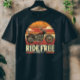 Här är ännu en trending vintage-stil t-shirt design med återsolnedgångslandskap med solnedgång och frasen "ride free". Säg till om du vill ha några förändringar! ✨