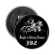 Du väljer din favorit- bakgrundsfärg för denna riddare i öppnare för flaska för glänsande pansargrafik designad. Grafikdesignen presenterar en riddare som bär eller hanterar en svärdstund som laddar på en häst. Tillfoga din egna personligmonogram till denna flaskaöppnare. Gör en trevlig gåva för en bröllop- eller årsdaggåva för en make eller en trevlig födelsedaggåva för en pojkvän.