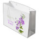 Visa din uppskattning för dina blomsterflickor eller andra medhjälpare på din bröllpsdag med denna tack-gåva i form av en presentpåse. Perfekt att fylla med en stor och speciell gåva för att visa din uppskattning. En vacker presentpåse med botanisk akvarellkonst av delphiniumblommor i vitt, lila och grönt. Matchar andra produkter i delphinium-serien. Anpassa/personaliera dessa gåvpåsar med titeln på dina medhjälpare, namn och ett personligt meddelande eller tack. Läser för närvarande Tack Blomsterflicka Emily. Unik målning och design av Sarah Trett.