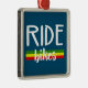 Lycka i livet kommer helt enkelt, bara cykla. Den här färgstarka designen har regnbåge i rand och stor text.