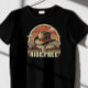 Här är en rustisk T-shirt vintage-stil med en gammal Western cowboyhatt som vilar på ett trästängsel med en nedsolnedgång i öknen och frasen "Ride Free." 🤠 🌅 ✨