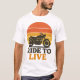 Förbered den öppna vägen med den här vintage-inspirerade motorcykeln T-shirt. Med en fet svart cykelsilhuett mot en återgång till solnedgången och den skarpa frasen "Ride to Live", blandar den här konstruktionen ihop tålig stil med tidlös nostalgi. Perfekt för biker, äventyr älskare, och alla som har en fri anda.