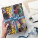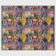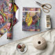 Elegant, vismisk, konstnärlig målning med magisk färgstark musikinställning,måne,älvor,hästar i pulserande tealblått grönt,röd,gult,vit färg .Akrylmålning på arbetsyta, blandmediamålning med golden och silver folie.