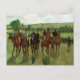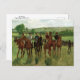 Ett vykort för bra med målningen "The Riders (1885)", av Fransken Edgar Degas (1834-1917). Ett horseri porträtt av flera jockeys på deras grundvatten i fält.