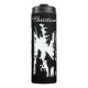 Den här termiska tumlaren flaska för behålla av kallet eller hetten är svart och vit med lite rödrift huva sitta under träd i skogen och pratar med vargen som håller blommor. Anpassa ditt namn med mallen.