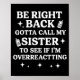 Right Back Gotta Call My Sister To See If I'm Overreactting
