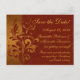 Skicka den här söten spara datumvykorten för att meddela din fall- eller höstförlovning. Lägg till lite elegans till ditt brickröda eller rostiga färgad bröllop med det här sofistikerade bröllop- och företagsfacket. Klassiska snurrar och scrollsar i rik färg, perfekt för höst och fall i tillfälle. Det här objektet är tillgängligt som en fullständig samling i bröllop, inklusive inbjudningar, OSA kort, Spara datumen, magneter, Stickers, Bord Place Card, Bröllop Planning, Photo Album Binders och Mer!