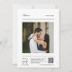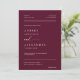 Den här elegantens moderna minimalistiska bröllopsinbjudan blandar ett rent serif-teckensnitt med vacker manusgrafi för ord "och" och "svara", ge det ett tidlöst och sofistikerat utseende på en burgundisk bakgrund. Designen innehåller ett foto av paret och en QR-personlig som riktar gästerna till OSA och information om händelser, skapar den en kombination av stil och bekvämlighet i perfekten. Bli grön med denna allt-i-ett-miljövänliga inbjudan genom att minska behovet av ytterligare OSA- och detaljkort. Lägg bara till QR-koden längst bak i inbjudan och viktig information från bröllop digitalt. Anpassa namn och formuleringen i några enkla steg och anpassa inbjudan med ditt eget foto för en unik och meningsfull beröring. Observera: Den vackra skrivningen av "och" och "svar" på ord tillsammans med linjer på både fram- och baksidan och andra grafiska teckningar i inslag kan inte redigeras, flyttat eller tas bort. De är fixerade. Om du vill ändra färg kan du enkelt anpassa inbjudan så att den matchar temat bröllop genom att klicka på "Anpassa inbjudan". Du kan anpassa inbjudan med texten och den digitalt genom text, e-post eller social-media. Föredrar du en traditionell beröring? Du kan också skicka en utskriven version till dina gäster - eller göra båda för ytterligare bekvämlighet!