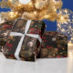 Cute Pitbull-dockor är redo och väntar på jul, en mörk med dubbla ljus, röda bubblor och Julklapp och rött rosett band.. underbarare valpen papper för att kapsla dina presenter i år, måste ha för leksaksfamiljer eller andra hundälskare - - A © WhimsicalArtwork™ original -