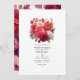 Rik röd blommande bröllopsinbjudan. Perfekt för ett vinterbröllop. QR-koden på baksidan leder till er bröllopssida där folk kan lära sig mer och svara.