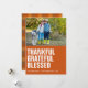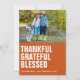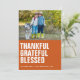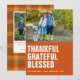 Rustik, modern och söt Thanksgiving-foto kort med en bild längs toppen. Enkel bränd orange med fet vit text "tacksam, tacksam, välsignad" vänsterjusterad. Anpassa med era namn, året och en högtidlig hälsning (visas med "Glad Thanksgiving"), och lägg till ett extra foto och personligt meddelande på baksidan om så önskas. Skicka mig ett meddelande om du behöver hjälp eller har några speciella önskemål.