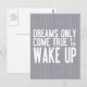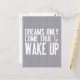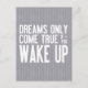Textdesign med ord den RIKTIGA KOMEN för DRÖMMAR ENDAST, OM DU VAKNAR UPP" på en grå färgstreckbakgrund