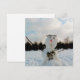 En riktig snöman och ett vinterlandskap med lärkträd och snö ...