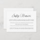 Den här eleganten kan du lägga till ett säkerhetskort för Covid 19 till din bröllopsinbjudan för att ge dina gäster tydliga riktlinjer för de säkerhetsåtgärder du ska vidta under pandemin. Du kan inkludera riktlinjer för maskering, avstånd av social, handssanering och sanering av station och alla andra säkerhetsåtgärder som du kommer att vidta i bröllop. Modern svart kalligrafi säger "Säkerhetsåtgärder" och lägger till en klassisk snyggt till dessa minimalistiska svarta och vita höljeskort.