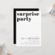Den här inbjudan till överraskningspartiet innehåller ett fet teckensnitt med fet contemporary och en modern minimalistisk utformning med en edgy kombination av svart och vitt färg. Redigera all färg och alla formuleringar för att uppfylla dina behov.