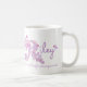 Hand plockade brev R namn och mugg. Söt hjärta och blomkål R doodlad typografisk design med hjärta och blommor och ord Riley Courageous. Skämt och medkännande. Andra betydelser för namn och namn finns tillgängliga. © Unik, ordalydelse, konst och design av Sarah Trett för www.mylittleeden.com på Zazzle