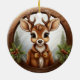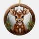 Den hĂ€r prydnadsformen för renjulet har en rund, brunt ram med röda bĂ€r frĂ„n Julafton och grönt lĂ€mnar att ge ser det som ett rustiskt och mysigt utseende. Inuti prydnadsĂ€mnet, ett sött baby djur, hjort med antlers, i ett tecknad grafiskt stil, med brunt jacka och med buggslips, stĂ„ende i förgrunden. Bakgrunden grĂ€s trĂ€d fyller i julhelgens charm för denna beundransvĂ€rda unika dekoration. Samma bild finns pĂ„ framsidan och baksidan. Detta garanterar att oavsett hur prydnadsfĂ€rgen gĂ„r, sĂ„ ser det alltid positivt och fullstĂ€ndigt ut. 🩌 🎄