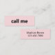 Det här mobila nummer-affärskortet säger "ring mig på framsidan". Baksidan av det här affärskortet för rosa av blek har två linjer svart text. Du kan redigera texten för att visa ditt namn och mobila nummer.