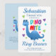Ett sött dinosaurie-ringbärare tack-kort för din ringbärare eller sidorpojke. Denna anpassade personliga inbjudan har en söt dinomite-dinosauriedesign - ett roligt och färgglatt sätt att tacka en ung pojke för att vara en bröllopsdeltagare.