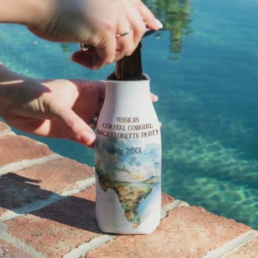 Ring dina kustcowgirl tillsammans för en bachelorette-strand helg. Utformningstemat har en cowgirl som surfar på framsidan. Baksidan har resvägen tillsammans med cowboystövlar och segelceller. Lasso en bra!