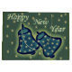 Creative imaging, effects, are the result, of this uniquely-designed, drawing of two spruce-green, colored bells, outlined in midnight-blue-with yellow stars, and Holiday greeting, displayed across a starry, olive-colored, and blue, sky.