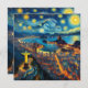 Detta vackra koncept är ett Rioo de Janeiro-perspektiv med Kristus Redeemer-statyn i stil på Vincent Van Goghs stjärnbergsnatt.