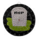 Den här fantastisk-brädan har en grått gravsten med RIP som droppar svart text på den och står på en kompress av grönt gräs. Bakgrunden är svart innan den här morbiddesignen utförs.