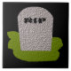Den här fantastisk-plattan har en grått gravsten med RIP som droppar svart text på den och står på ett plåster av grönt gräs. Bakgrunden är svart innan den här morbiddesignen utförs.