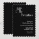 - Classic black and white with stylish RIP 20s typography motif and scalloped edge.