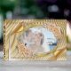 Ett elegant guld-kort med flygande guld-hörn och guld kräm ro för en chic bröllop eller någon annan utformning av händelsekort för att anpassa