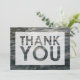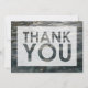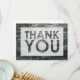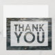 Denna djärva, mångsidiga design har en fotobakgrund som du kan ändra till din egen bild om du vill. Bilden jag använde är en lugn yta med rippelvatten fylld med släta grå stenar. Reflexen bidrar till stämningen av stillhet. Över fotografiet har jag placerat en genomskinlig rektangel med "TACK" utskuret med en djärv sans-serif-teckensnitt. Baksidan lämnades tom för ditt personliga meddelande.