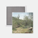 Väg i en torr flodbädd påminner om minnet av vatten som gång formade den på en annan måndag i öknen. Fotografi av färg som tagits i öknen utanför Scottsdale, en suburb av Phoenix, Arizona. Anpassa den dekorativa Westerna kylskåpsbildmagneten i öknen med egen text och bilder med alternativet "Anpassa den" till speciella magnetpresentationer i sydväst.