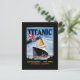 Vintage av teckningar som visar den RMS Titanic-lämnande porten. RMS Titanic var ett brittiskt passagerarfartyg som sjönk i Nordatlanten efter kollision med ett isberg.