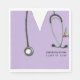 Unik medicinsk design med lavendelsjuksköterskor, stetoskop och en lustig illustration från den schweiziska armén knivar.