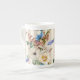 Ro, anemoner, orkidéer på ett grå rand. benporslin mugg