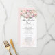 En söt rosa ros blommigt gräns anger en elegant ton. Namn som fyller år följer i ett traditionellt skript. Menyn fortsätter nedan i en kombination av klassisk upprätt och kursiv typsnitt. Mycket enkelt att anpassa. Ta bort kurser som inte gäller.