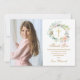 Ro Blommigt Garland Confirmation Photo Guld Skript Tack Kort