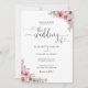 Den här elegant dammiga ro-blommigtens svartvitt-bröllopsinbjudan kan vara personlig med dina firande-detaljer som är angivna i chic-typografi. Designad av Thisisnotme©