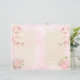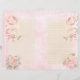 Ljusa rosa ro och små rosa blommor med ljusbeige skrivutrymme, invändigt med guld linjer på högerna. Rosa vattenfärgsbakgrund på båda sidor. Vit linjer på lämnat sida. Har vintage, land chic-format.