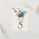 En skarp, djärv blommigt av ro i skuggor av dammigt blått och persikofärgat är brännpunkten för många av biet i denna svit i bröllop som också innehåller elegant text och moderna designlayouter. Det här bordsnummer-kortet i bröllop har en översta arrangemang av ro och flytande skripttext. Ange enkelt bordsnumren med hjälp av den angivna mallen. Sök i ID584 om du vill se alla matchande delara i denna vackra bröllop-uppsättning.