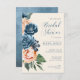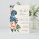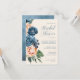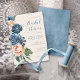 En skarp, djärv blommigt av ro i skuggor av dammigt blått och persikofärgat är brännpunkten för många av biet i denna svit i bröllop som också innehåller elegant text och moderna designlayouter. Den här inbjudningskort för möhippan-matchningen har allt det ovanstående och en vacker abstrakt med vattenfärg på motsatt sida i dammiga blå toner. Lägg enkelt till bridens namn och händelseinformation med den angivna mallen. Sök i ID584 om du vill visa alla matchande produkter med den här designen.