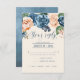 En skarp, djärv blommigt av ro i skuggor av dammigt blått och persikofärgat är brännpunkten för många av biet i denna svit i bröllop som också innehåller elegant text och moderna designlayouter. Bröllop OSA-kortet som visas här har en överkant gräns i ro och en vacker abstrakt i vattenfärg på motsatt sida i dammig blå. Ange enkelt datumkrav och menykrav för bröllop med hjälp av den angivna mallen. Sök i ID584 om du vill se alla matchande delara i denna vackra bröllop-uppsättning.
