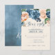 En skarp, djärv blommigt av ro i skuggor av dammigt blått och persikofärgat är brännpunkten för många av biet i denna svit i bröllop som också innehåller elegant text och moderna designlayouter. Bröllop OSA-kortet som visas här har en överkant gräns i ro och en vacker abstrakt i vattenfärg på motsatt sida i dammig blå. Ange enkelt datumkrav och menykrav för bröllop med hjälp av den angivna mallen. Sök i ID584 om du vill se alla matchande delara i denna vackra bröllop-uppsättning.