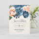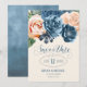 En skarp, djärv blommigt av ro i skuggor av dammigt blått och persikofärgat är brännpunkten för många av biet i denna svit i bröllop som också innehåller elegant text och moderna designlayouter. Det matchande "Spara datum"-kortet som visas här har allt det ovanstående och en vacker abstrakt med vattenfärg på motsatt sida i dammig blå. Sök i ID584 om du vill visa alla matchande produkter med den här designen.